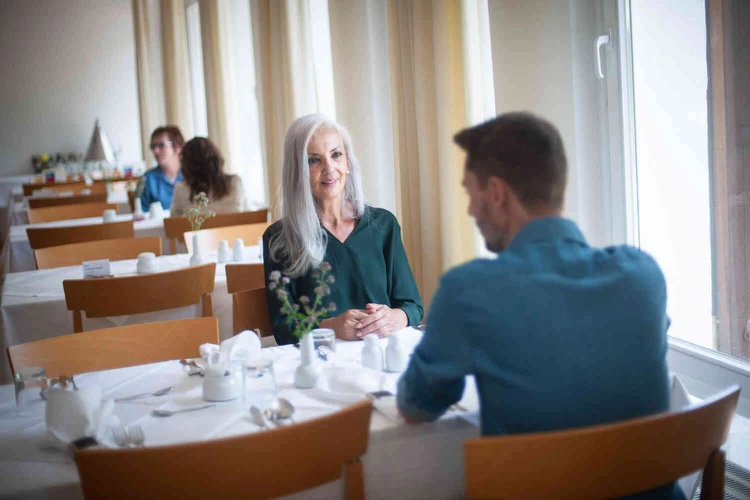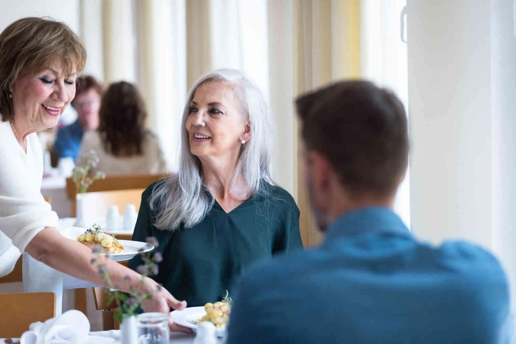 Unser Rezept für eine gute Ernährung: abwechslungsreiche und gesunde Zutaten. KöchInnen, die ihr Handwerk verstehen und die Gerichte frisch zubereiten. Ein herzliches Küchenpersonal, das die warmen Mahlzeiten am Platz serviert. Und ein Speisesaal mit einladender Atmosphäre, in der man gerne isst. Darüber hinaus unterstützen und beraten wir unsere Gäste bei Ernährungsfragen. Ebenso kann auf Wunsch und nach ärztlicher Anordnung auch ein diättherapeutisches Konzept besprochen werden.