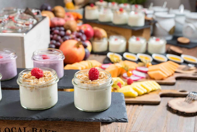 Zu den Hauptmahlzeiten können Sie zwischen verschiedenen Menüs, kalten und warmen Speisen wählen. Unsere Küche ist von regionalen und saisonalen Zutaten geprägt. Alle Mahlzeiten werden vom Küchenteam frisch zubereitet. Und auch auf spezielle Essenswünsche sind wir eingestellt – egal ob vegan, gluten- oder lactosefrei.